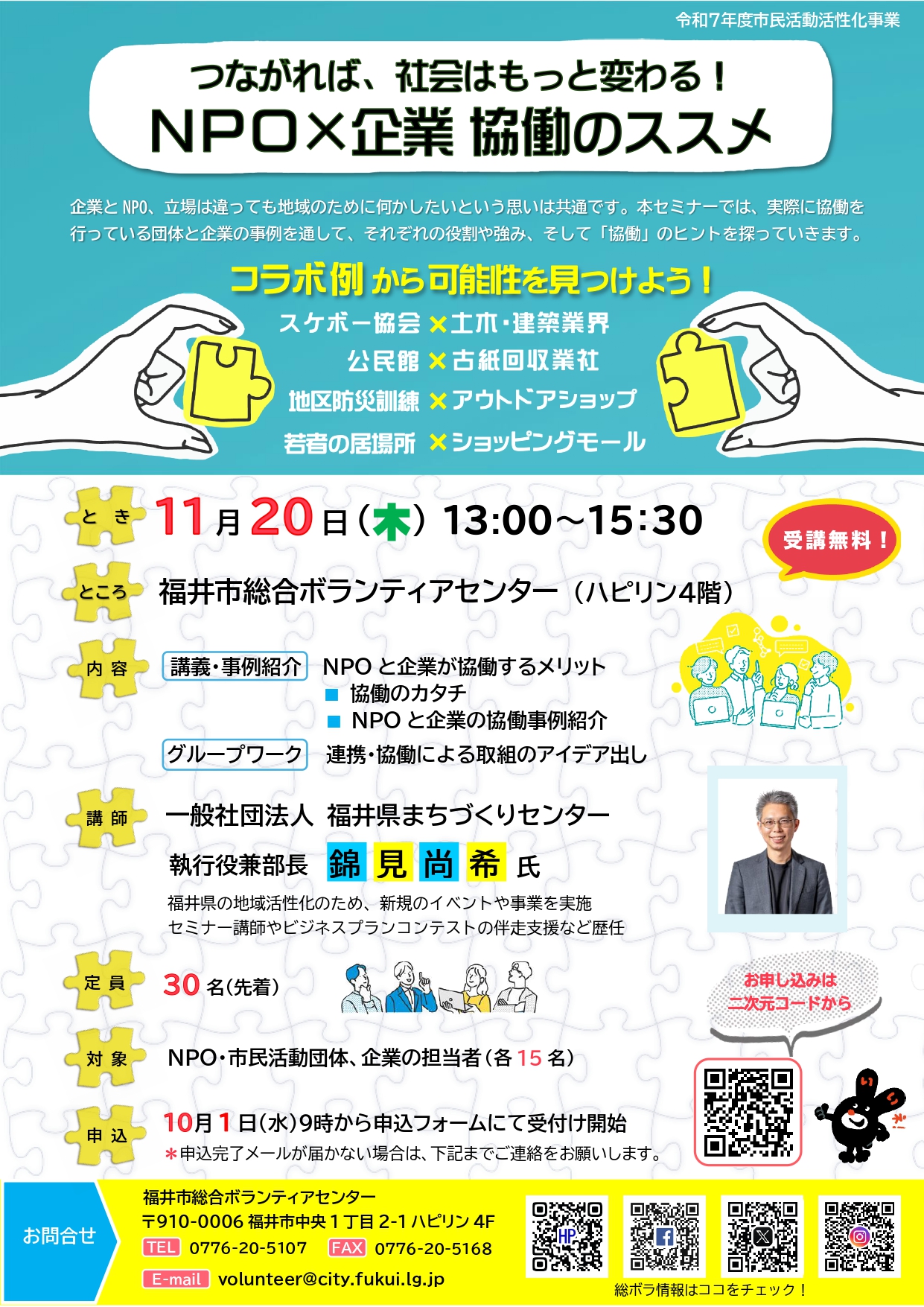 📍 会場:福井市総合ボランティアセンター(ハピリン4階)